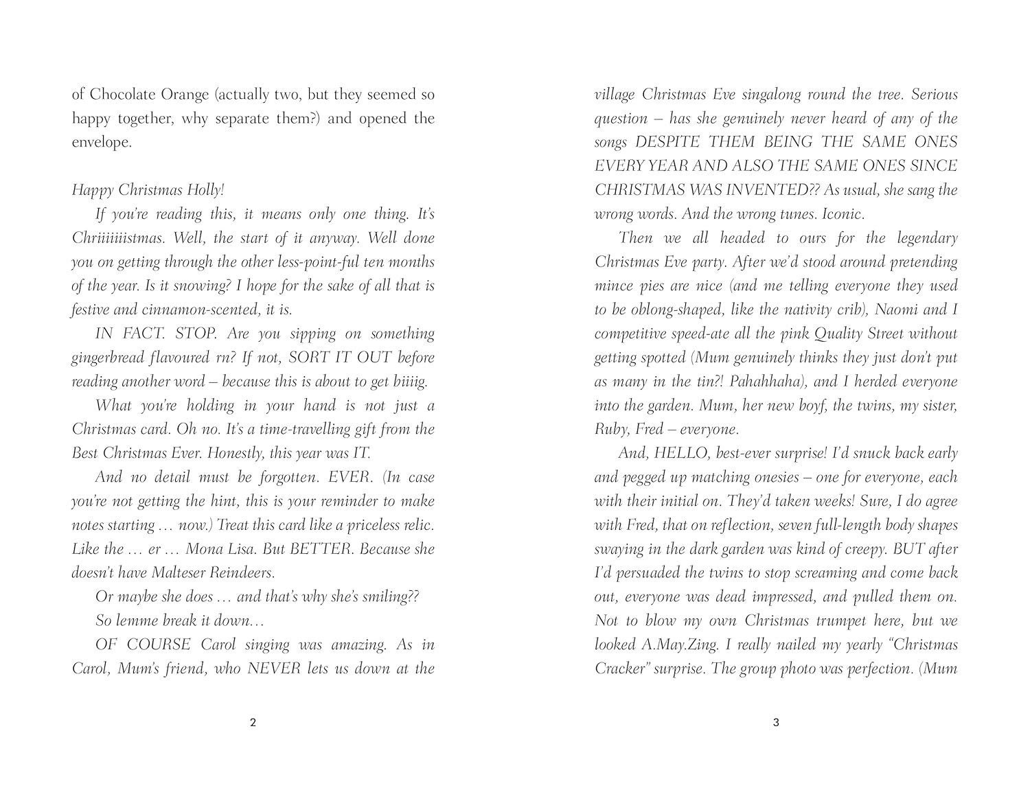 Holly lives in a small village in England, and LOVES christmas more than anything else. Nothing is going to get in the way of this year being the BEST Christmas ever . . . Nothing! But when her mum announces she’s selling their house, and Woody decides they should go on a “break”, her plans for the perfect Christmas start to crumble like overbaked gingerbread people.