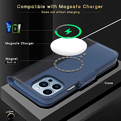 FYY Designed for iPhone 13 Pro Max 5G Case, [Support Magsafe Charging][Genuine Leather] Wallet Phone Case with Card…