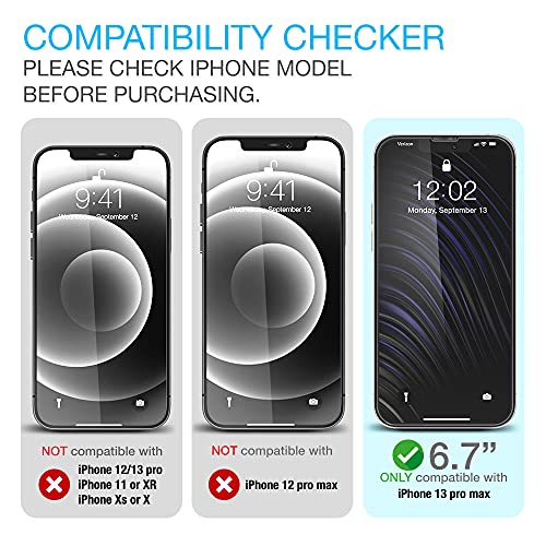 Tempered Glass Screen Protector (2pc) & Lens Protector (2pc) – Fully compatible only with iPhone 13 Pro Max 2021, 6.7 inch-display. (Note: This product was not designed for the iPhone 13 / iPhone 13 Pro or other model.)