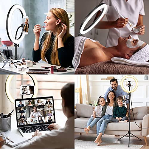 【Selfie Ring Light with Universal Phone Holder】The ring light with a detachable phone holder, which can safely and stably hold the phone at any angle to get the best supplementary light angle. Perfect for Live Stream, Makeup, YouTube Video, Photography.