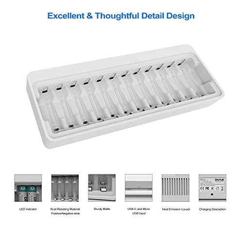 Specification: Dlyfull 12 Bay Battery Charger AA AA for Ni-MH Ni-CD AA AAA Battery Charger with 2 USB High-Speed Charging Ports for…