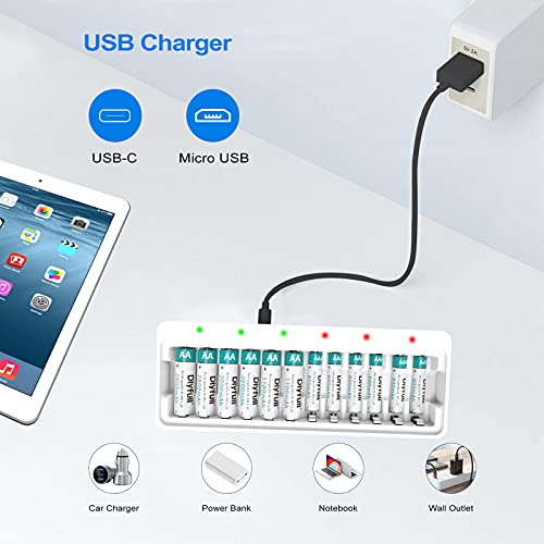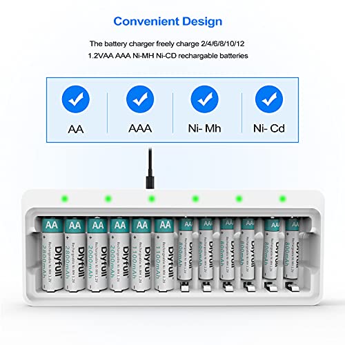 Dlyfull 12 Bay Battery Charger AA AA for Ni-MH Ni-CD AA AAA Battery Charger with 2 USB High-Speed Charging Ports for…