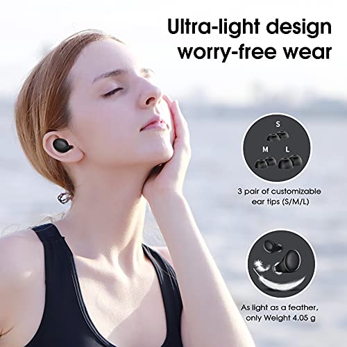 [Comfortable fit & IPX7 waterproof] Combined with ergonomic design, earbud weighs only 4.05 grams per side, and equipped with 3 pairs of different sized rubber ear tips for options, you won’t feel tired and painful even if wearing these Losei earbuds wireless for a long time. IPX7 waterproof can effectively prevent the earphones from the damage of sweat and raindrops, made for sports/workout/running/travel etc.