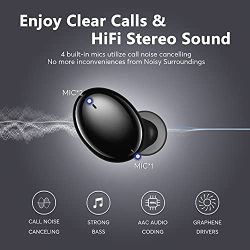 [Clear Call with 4 Noise Canceling Mics] Equipped with 2 built-in microphones inside each earbud, and adopting advanced Call Noise Canceling technology, Losei D73 true wireless earphones can reduce background noise effectively and isolate the environment interference, thus caller would enjoy clear calls and talk just like face to face. Born for business and commute.