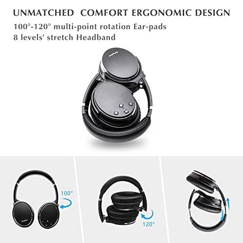 World-Leading Digital Active Noise Cancelling (ANC): Advanced noise cancellation technology effectively quells 90% stable low frequency background noise when in noisy environment airplane/subway/car/office/factory/crowd etc.(not 100% sound canceling.).ANC works well in both wired and wireless mode.ANC ON,World OFF.To be better and better noise reducing is our goal!
