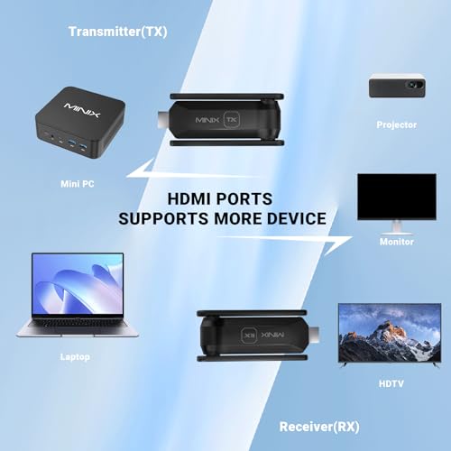 Specification: MINIX Wireless HDMI-Plug and Play- Multi-Screen,Expansion,1080p,164FT/50M,WiFi 5G/60Hz,Adapter for TVs,Monitor,Laptop (Wireless HDMI 4RX*1TX)