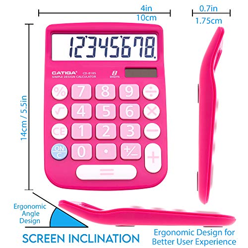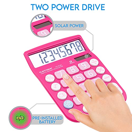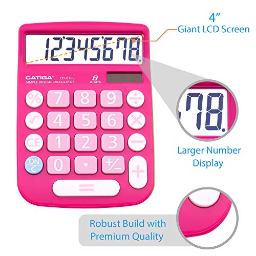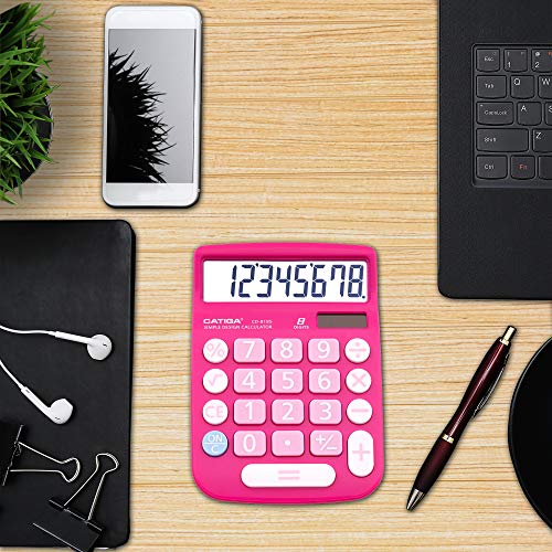 CATIGA CD-8185 Office and Home Style Calculator – 8-Digit LCD Display – Suitable for Desk and On The Move use. (Pink)