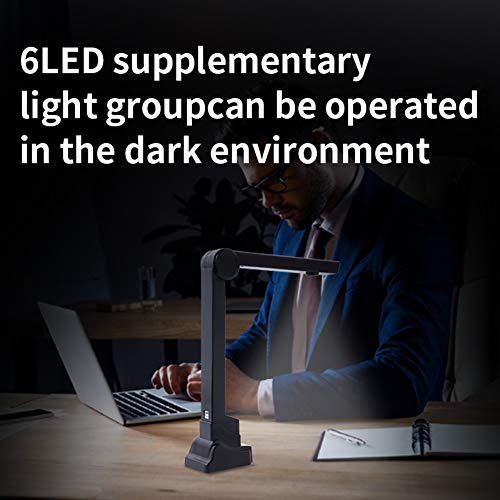 【Powerful Features】This Professional Document Camera has a lot of powerful features, including a 8 megapixel camera, non-contact Scanning Technique and 6 LED fill lights, CMOS Image Sensor, helping you to get clear image in dark environment, very considerate design. In order to avoid affecting the scanning effect, please block the light when scanning reflective materials, such as magazine.