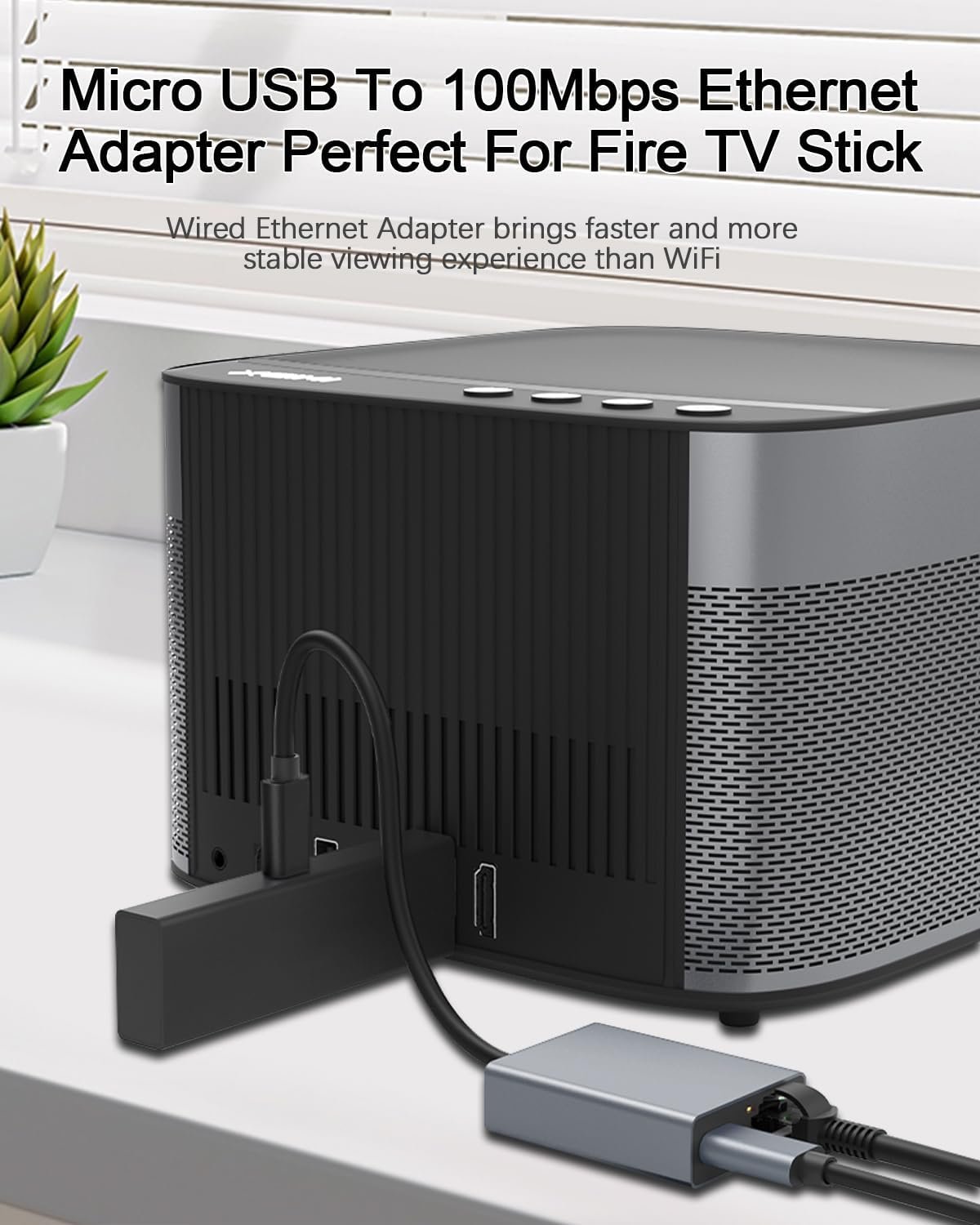 Plug & Play – Micro USB to Ethernet adapter is a bridge between RJ45 Ethernet cable and TV stick, without the need to install any drivers or software. No channel issues, no frequency issues, no interference issues, no security type issues, able to immediately identify and use.