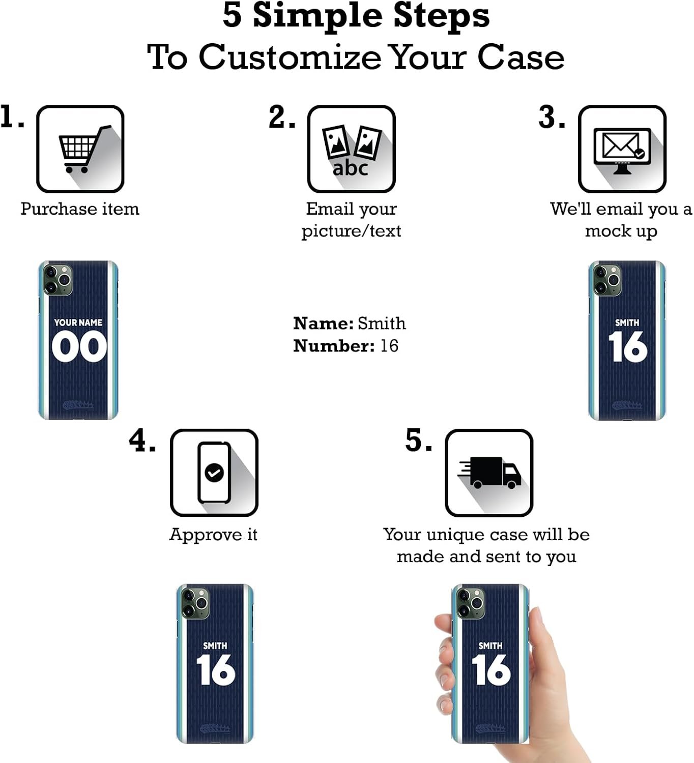 Purchase Item > Email your picture/text > We’ll email you a mock up > Approve it > Your unique case will be made and sent to you