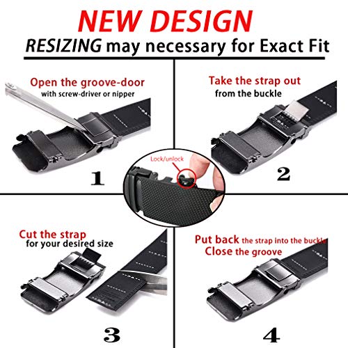 Exact-Fit–Easy to customize the belt size, just need to remove the belt buckle, and cut the strap at needed size. To avoid useless of too short, just buying a bigger size;