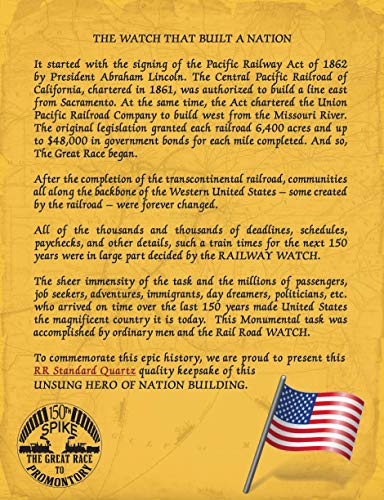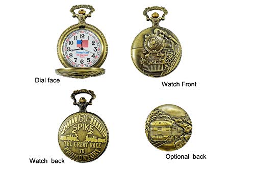 Specification: North American Railroad Grade Approved, Railway Regulation Standard, Historical Train Pocket Watch with 2 Chains”150th Aniversary USA” Japanese Movement”Steam Engine #”1″ (of 5 Watch Collection)