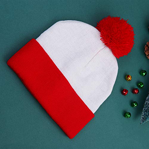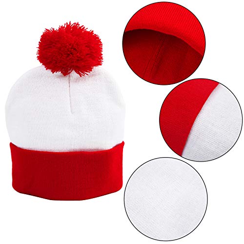 URATOT Halloween Costume Red White Pom Pom Beanie Hat Christmas Cuff Knit Hat