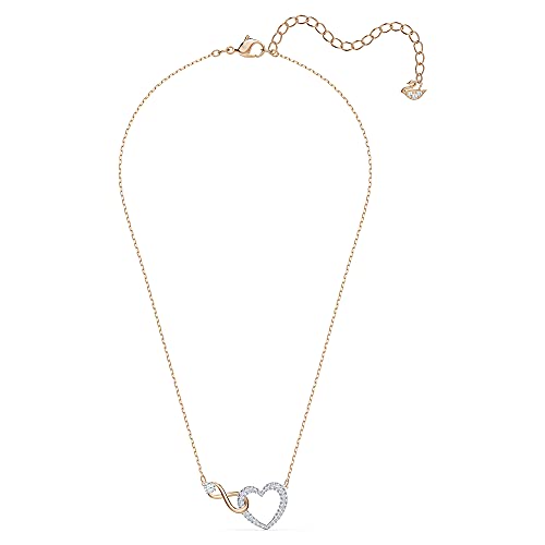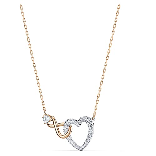 - Link adoration in the Swarovski® Infinity Heart Necklace. Pave heart pendant is highlighted by a rose-gold infinity pendant and link chain.