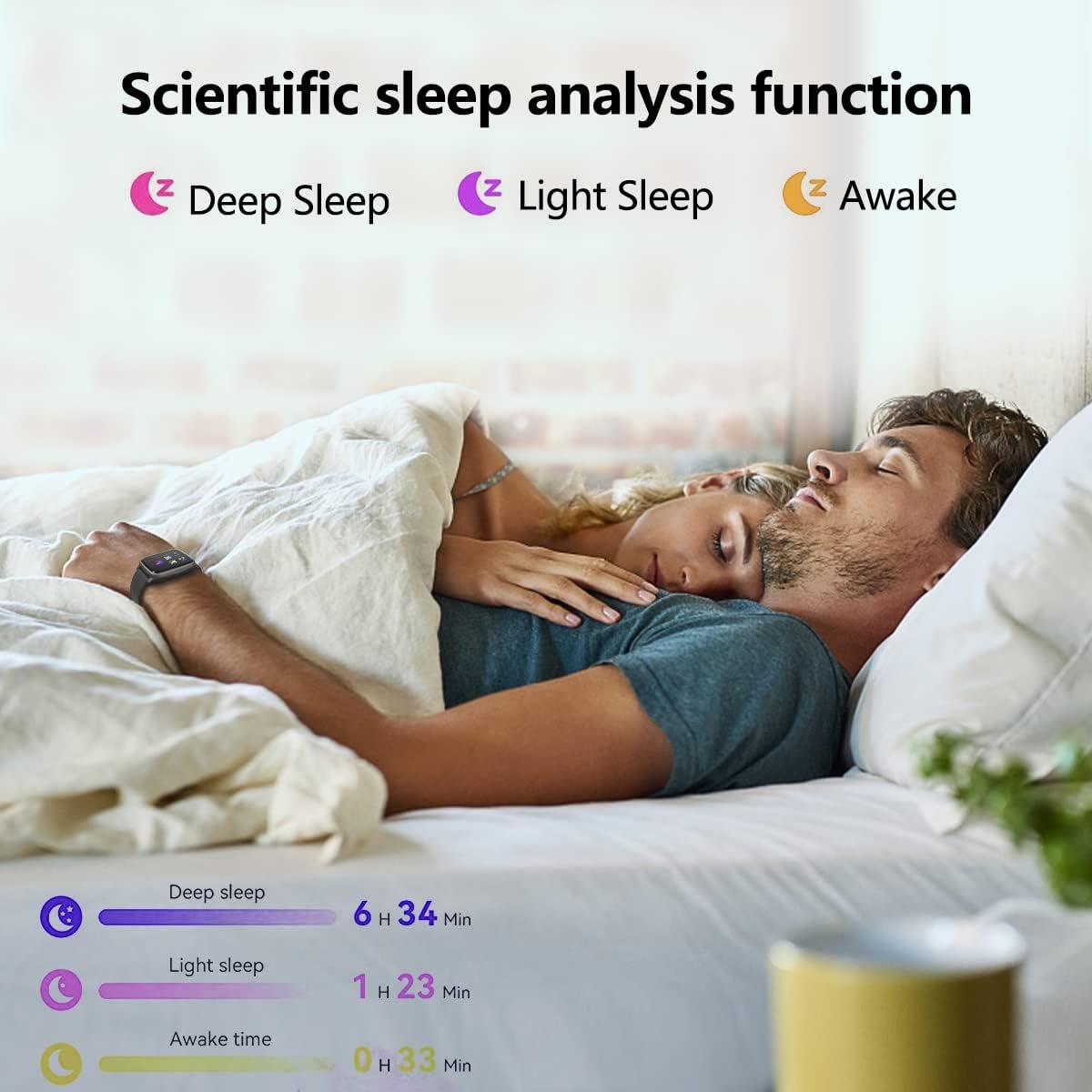 Advanced Sleep Monitor: Track your awake, light, and deep sleep time. Better understand your sleep quality.