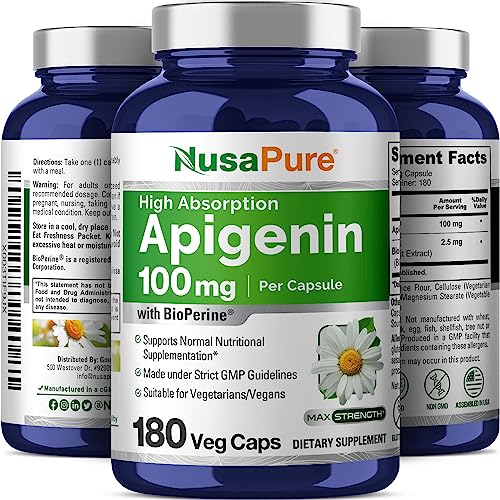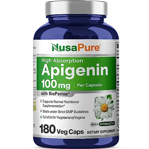 NusaPure Apigenin 100 mg per Capsule 180 Vcaps – Bioperine (Non-GMO, Gluten Free)