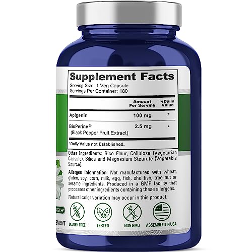 Specification: NusaPure Apigenin 100 mg per Capsule 180 Vcaps – Bioperine (Non-GMO, Gluten Free)