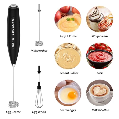 TODASANA CLUB® Milk Frother Wand | Best Double Whisk Milk Frother Handheld | High Powered 19000rpm/min With Improved Motor Electric | Drink Mixer For Coffe, Cappuccino, Frappe, Matcha & More
