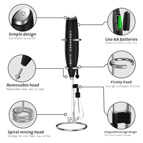 Specification: TODASANA CLUB® Milk Frother Wand | Best Double Whisk Milk Frother Handheld | High Powered 19000rpm/min With Improved Motor Electric | Drink Mixer For Coffe, Cappuccino, Frappe, Matcha & More