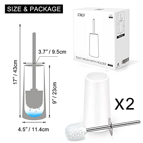 IXO Toilet Brush and Holder, 2 Pack Toilet Brush with 304 Stainless Steel Long Handle, Toilet Bowl Brush for Bathroom…