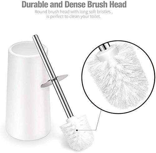 🚽【DURABLE & EFFICIENT BRUSH】With toilet brush head made by soft, flexible, sturdy, and dense bristles, toilet brush can 360°clean your toilet deeply and easily reach every part of it, such as the under- rim section.
