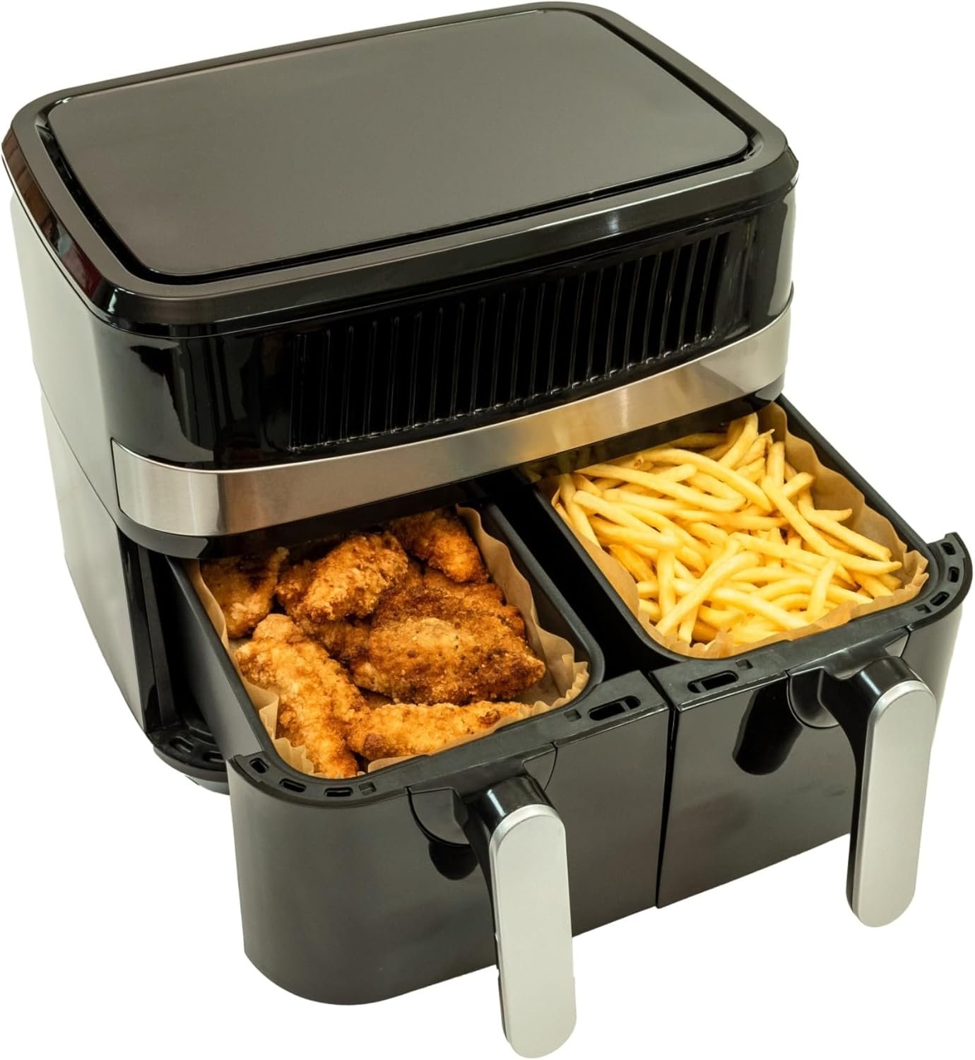 NINJA DUAL AIR FRYER LINERS – Paper liners designed for Ninja Foodi Dual AF200UK, AF400UKCP, Tower T17100, T17088, Vortx Vizion, Tefal Easy Fry Dual, Ninja Double Stack, and more.
