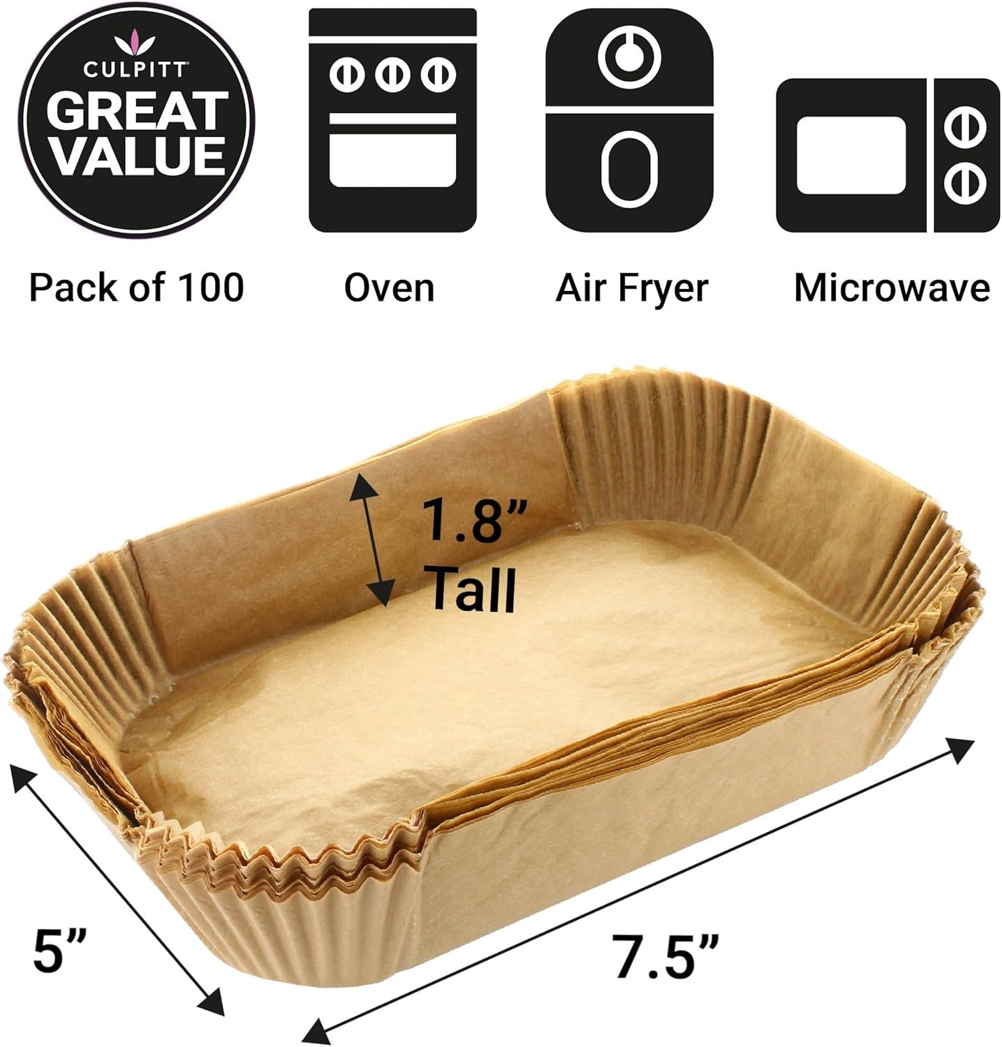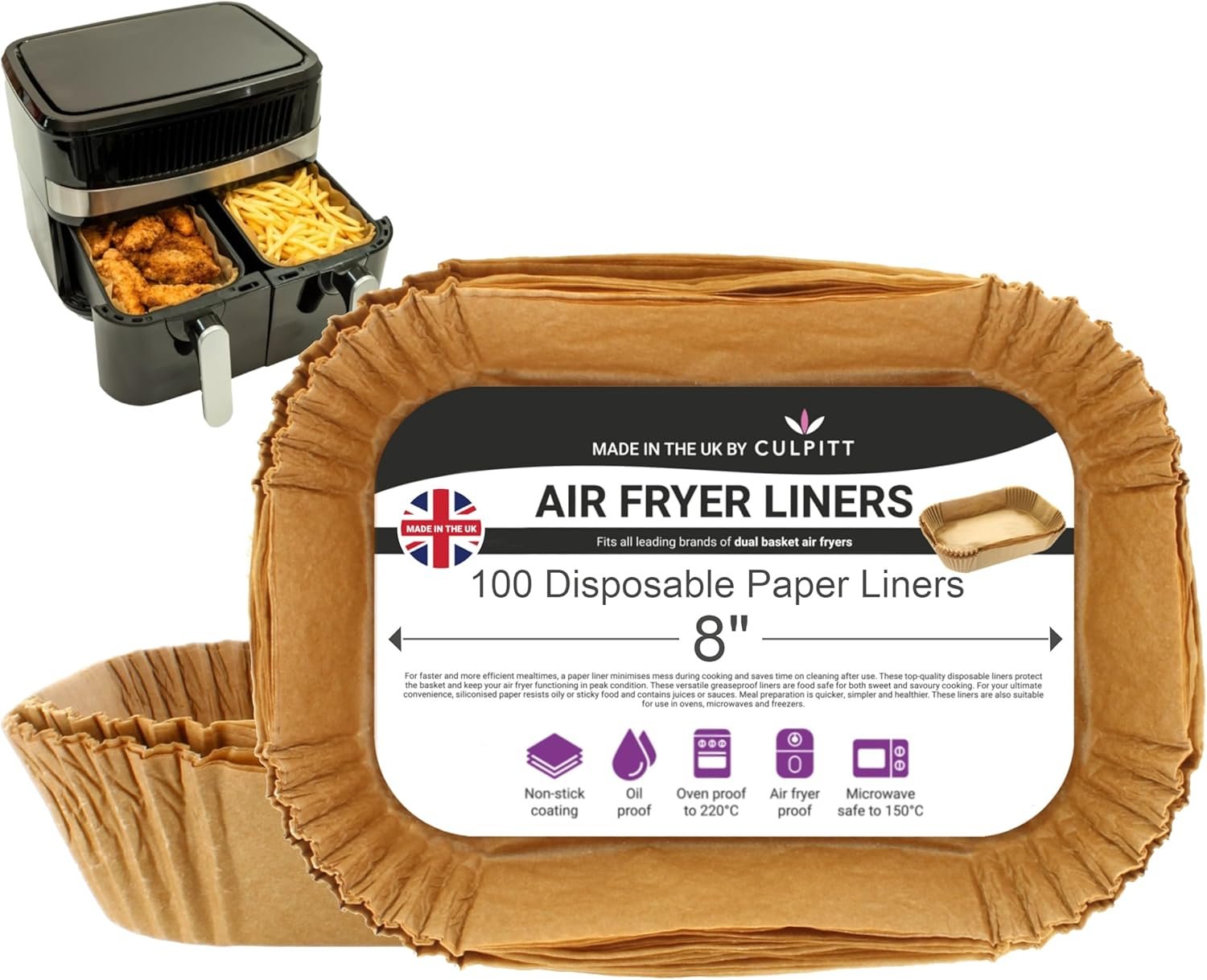 Culpitt Air Fryer Liners for Ninja Dual | 100 | Non-Stick Disposable Liners, Designed for Ninja, Tefal, Tower, Salter | 200mm x 130mm | Made in The UK | 100 Pack