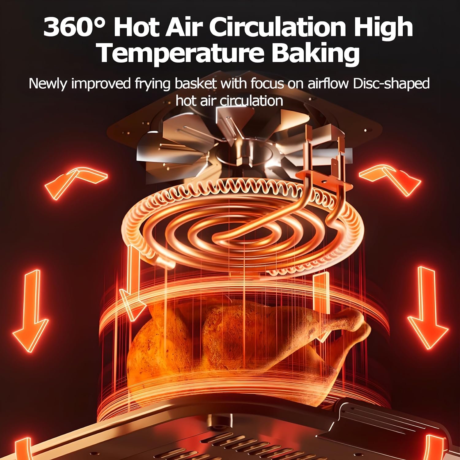 【Healthier Cooking Method】: Experience guilt-free frying with our air fryer that uses 90% less oil compared to traditional fryers. Enjoy crispy and delicious meals without compromising on health, thanks to its innovative cooking technology that promotes low-fat healthy cooking.