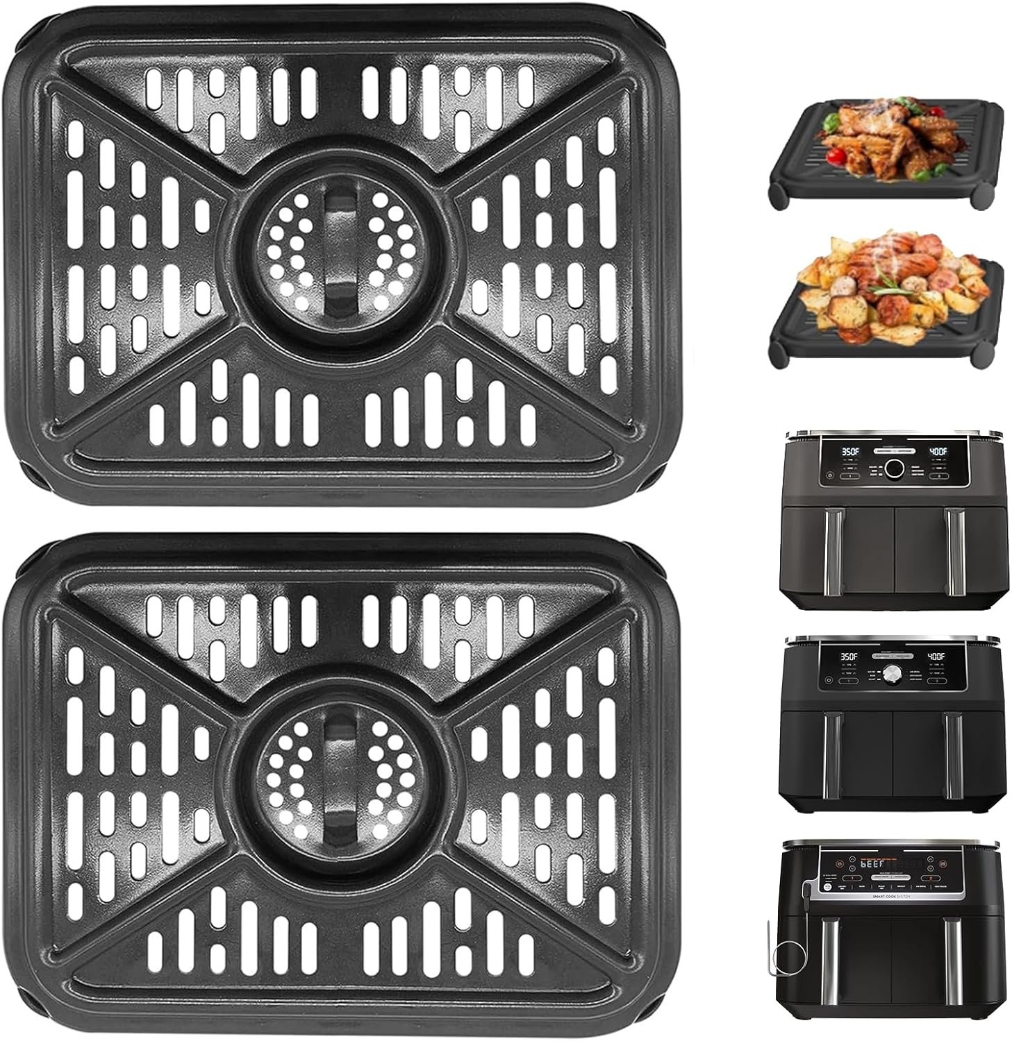 5 reviews for GWY Air Fryer Grill Pan for Ninja Foodi DZ401 DZ550 10 Quart DualZone Air Fryer, Replacement Crisper Plate Grill Plate Tray Accessories with Rubber Bumpers, Dishwasher Safe