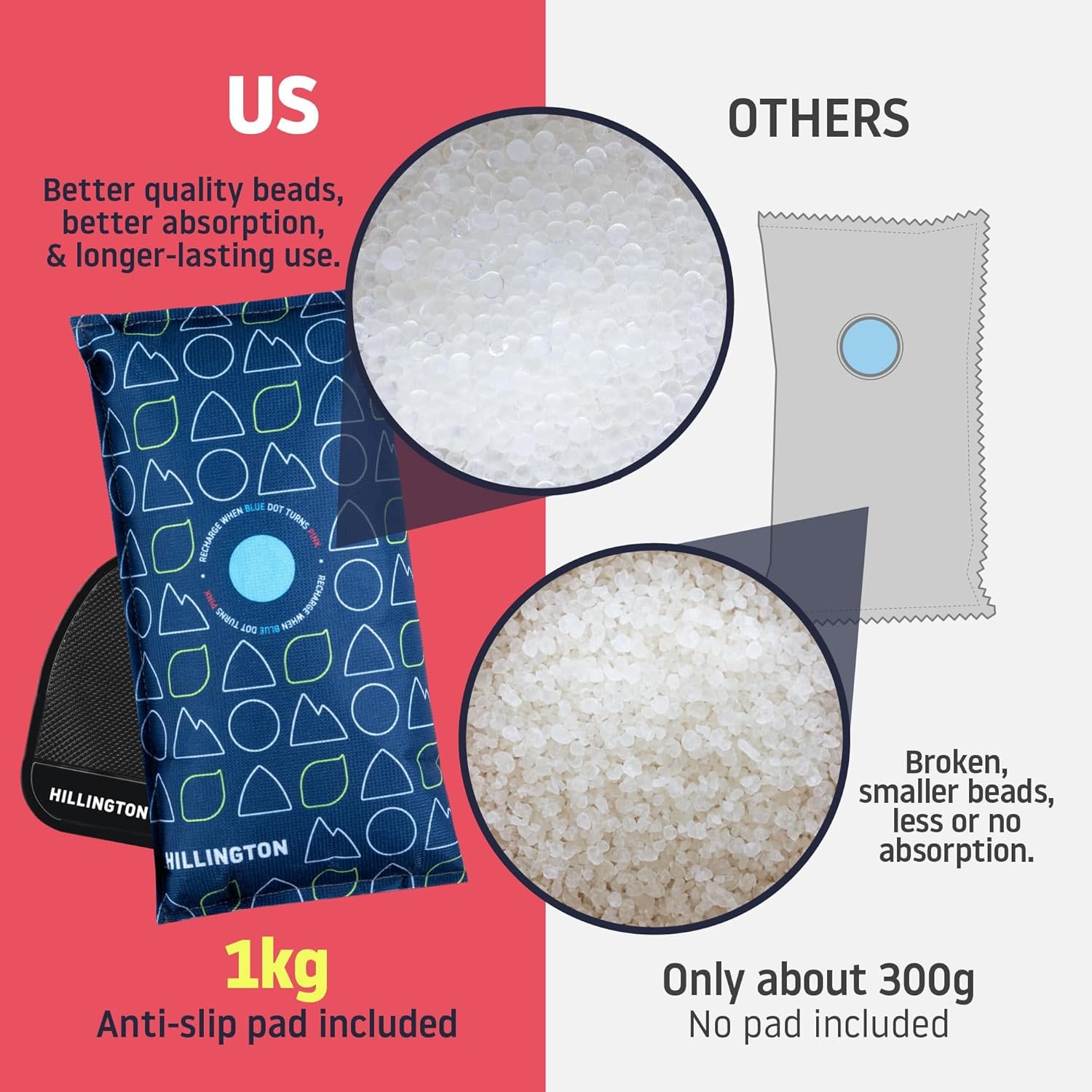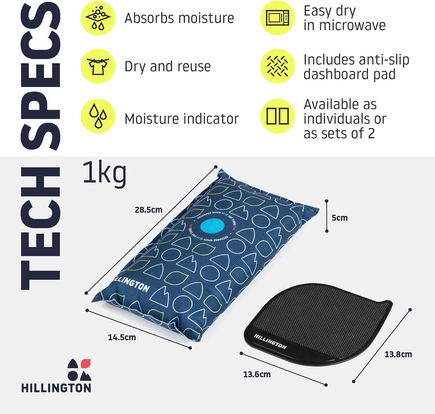 Hillington Reusable Car Interior Dehumidifier Bag and Dashboard Mounting Anti-Slip Mat – Ideal for Use in Vehicles to Prevent Damp, Moisture, and Condensation (2 x 1KG)
