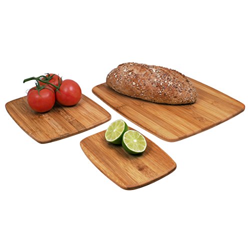 Farberware is the Top-Selling National Brand for Cutting Boards in the U.S. (Source: The NPD Group, /Retail Tracking Service. 52 weeks ending April 2016) This Farberware Classic 3-Piece Bamboo Cutting Board Set includes a 11 by 14-inch, 8 by 10-inch, and 8 by 5-1/2-inch cutting boards. These bamboo cutting board have a reversible cutting surface perfect for every food prep, from slicing fruit to chopping veggies. Also, use these boards to serve appetizers, serving bread, cutting pizza or displaying cheese and cured meats. Made from a replenishable resource, bamboo’s unique combination of strength, durability, and ease-of-care makes these cutting boards the perfect addition to any chef’s kitchen. Harder and denser than maple wood, bamboo resists scratching and is gentle on knife blades yet is lightweight, making it easy to move and store. Its natural moisture-resistant properties are ideal when cutting everything from ripe tomatoes to juicy turkeys. Hand wash with warm water and a mild detergent; rinse and dry immediately to preserve the board’s durability.
