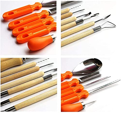 【STURDY AND DURABLE MATERIAL】: Made of solid ABS/Wooden handle and heavy duty thickened stainless steel, Ergonomically designed handle for comfortable handling and peace of mind. The tools won’t break during the carving process. Moreover, it is not for one-time use. Sturdy and hard to rust, so you can be used for Halloween every year. With convenient storage package you can store the tool after use.