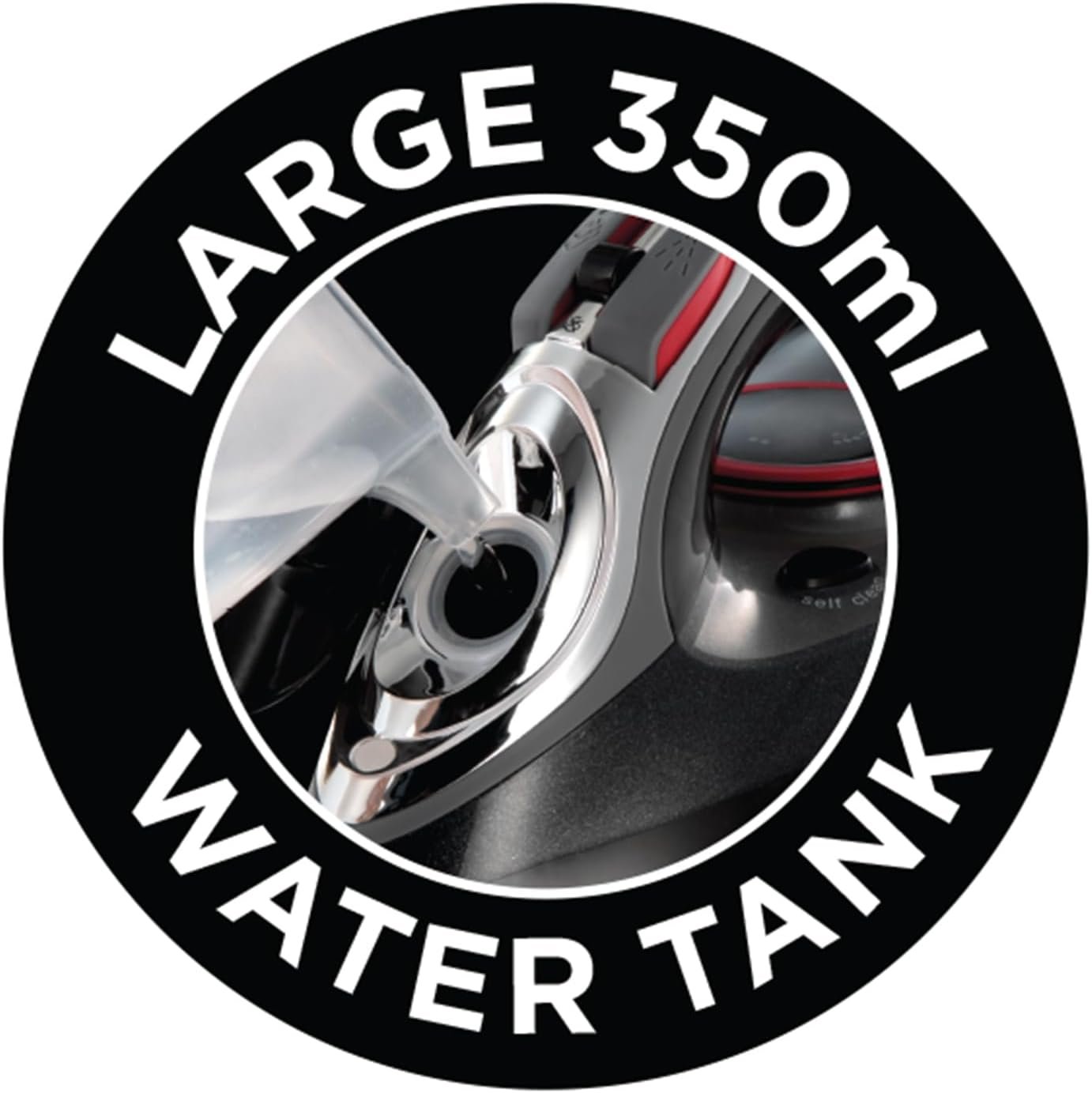 210g SHOT OF STEAM & 70g CONTINUOUS STEAM – The large 350ml water tank delivers a powerful 210g burst of steam to grips with creases in denim or linen and a 70g continuous shot for cotton clothing. Its soft handle and dial enhance ironing comfort.