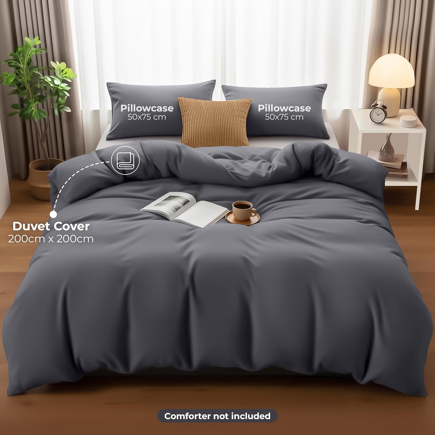 Duvet Cover Set – Includes 1 duvet cover measuring 200×200 cm with zippered closure, 2 pillowcases measuring 50×75 cm with zipper; comforter sold separately.