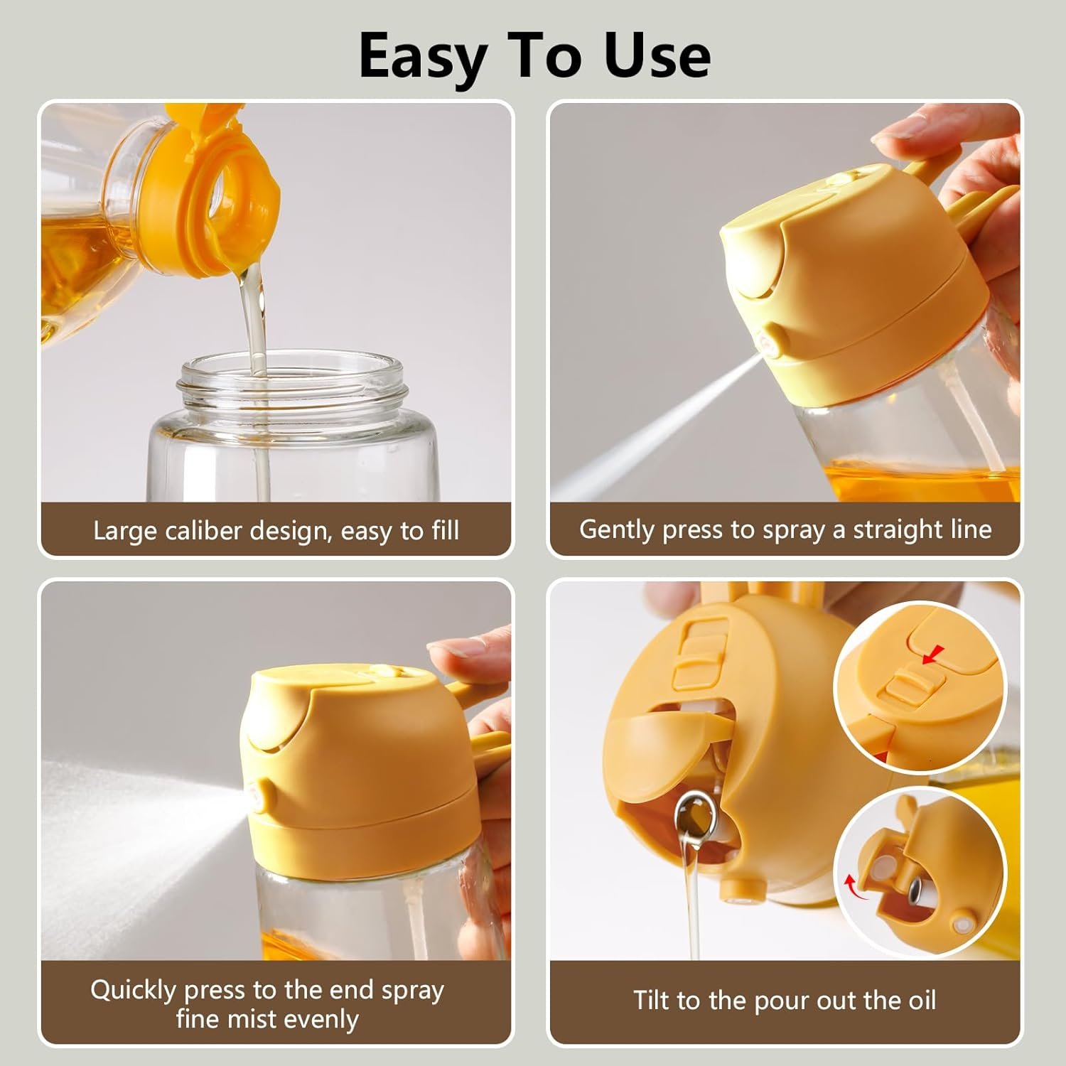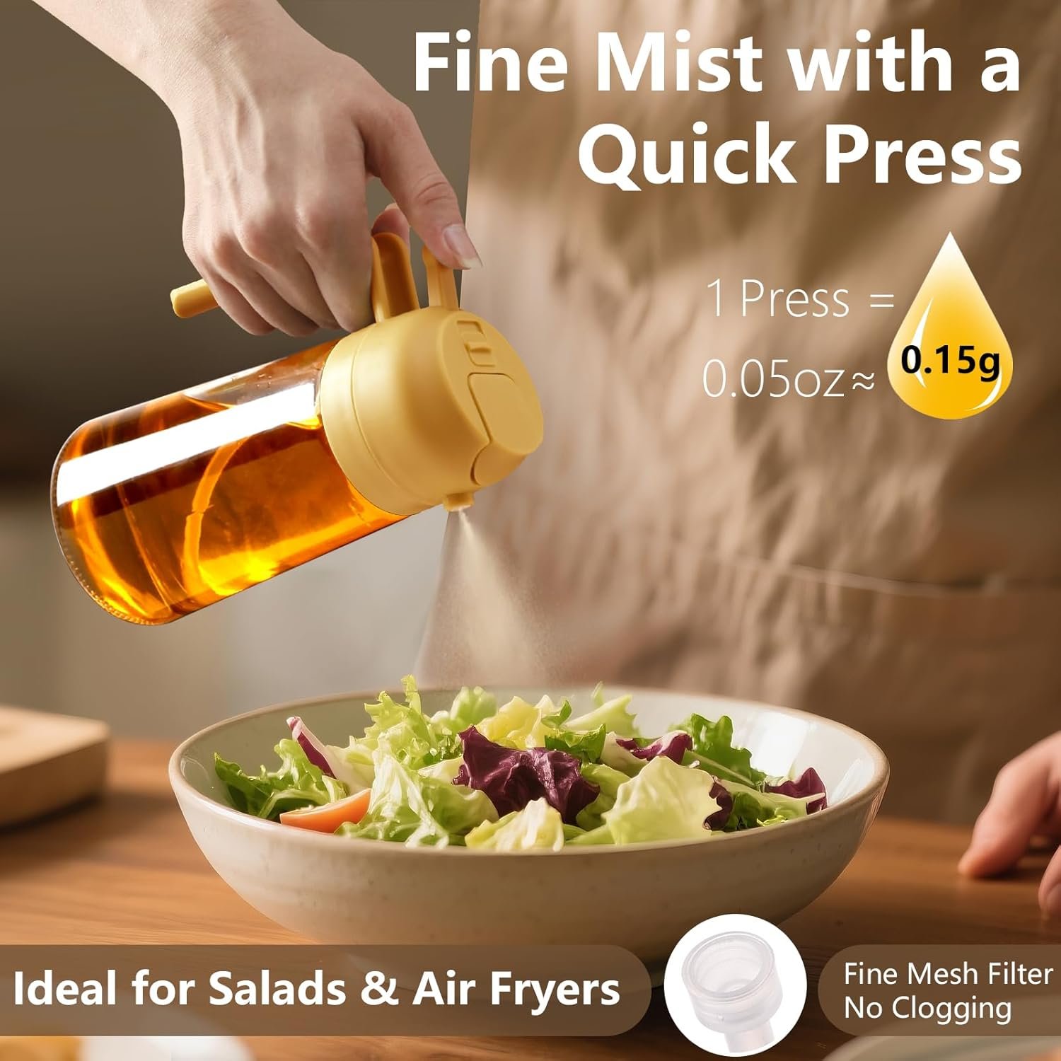 This oil sprayer has been such a good addition to my kitchen. I use it every day now. The spray is fine and even which makes it perfect for the air fryer and for lightly coating roasting trays without drowning everything in oil. The pour spout is very handy too when you want a proper drizzle on salads or vegetables.The glass bottle feels sturdy and looks much nicer on the counter than the plastic ones I have had in the past. It is easy to refill and the 470 ml size means you are not topping it up constantly. The spray mechanism works smoothly and has not clogged once.I have used it with olive oil, rapeseed oil and even a little mild garlic oil and it has handled them all without any fuss. It is simple to wash and goes back together quickly.A very useful tool for everyday cooking and one I genuinely love. It has made things quicker, cleaner and far more controlled. I am really pleased with it.