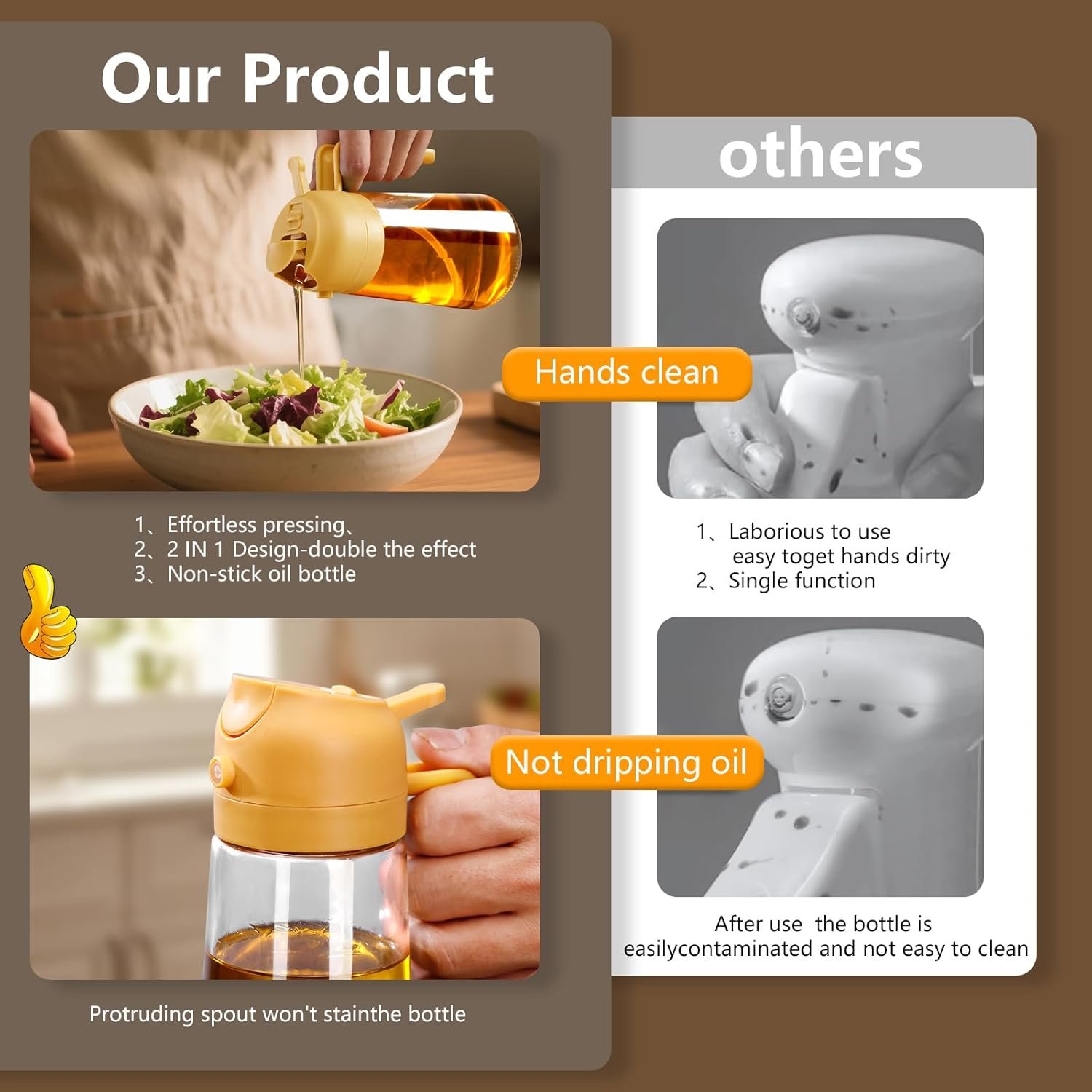 Bought this oil spray bottle specifically for my air fryer, and overall I’m happy with it. The glass bottle feels sturdy, the capacity is great, and having both a pour and spray option in one tool is genuinely convenient, it’s like a tiny kitchen multitasker with attitude.The spray function works, but it’s not perfect. If you press the trigger slowly, it shoots a direct stream and a bit of oil can drip, like the bottle is saying, “I’m doing my thing, deal with it.” If you press it quickly, the spray comes out properly and evenly, just enough to coat everything in the air fryer basket without turning it into a slip ’n slide.One thing I really appreciate is that when you pour oil instead of spraying it, there are no drips at all, it’s clean, tidy, and doesn’t leave oil running down the bottle. Finally, a bottle that knows how to behave!Overall, it does the job, especially if you use an air fryer often. Easy to clean, practical, and very handy in the kitchen.
