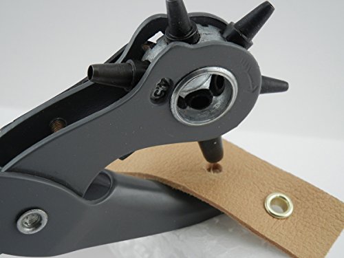Need an extra hole in your belt? These revolving punch pliers have a convenient spring tension and are self opening for punching round holes in leather, plastic, rubber, canvas, cardboard, and similar materials. Made of plated steel with six tapered and hollow, hardened steel punches.