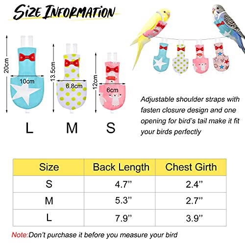 Package includes: you will receive 4 pieces bird diapers in different patterns, the size is for you to choose, Please check the size carefully before you order; It’s very convenient to take a bird out cage or travel, easy to put on and take off