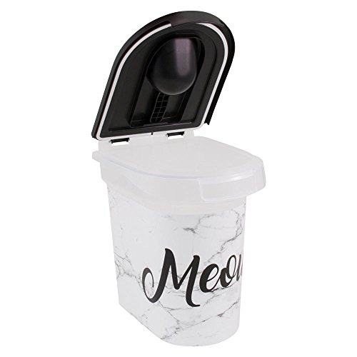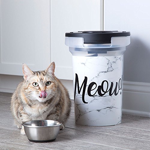 Specification: Paw Prints Plastic Pet Food Bin, Meow Marble Design,15lb
