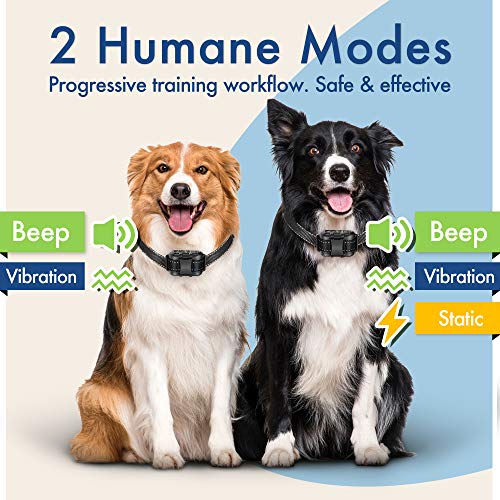 2 Humane Training Modes – This bark collar for medium dogs provides 2 efficient correction modes to suit all types dogs. You can set this dog bark collar as a vibration collar that only beeps and vibrates, or as a barking collar that beeps, vibrates and shocks. Easy to switch mode by pressing M button