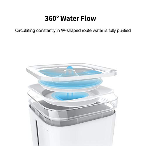 【Quadruple Filtration System】PETKIT pet fountain is equipped with high performance purifying filter which is composed of a cotton layer, a coconut shell activated carbon and ion exchange resin. The filtration system provides healthy, fresh and oxygen-enriched water for your cats, dogs and small animals