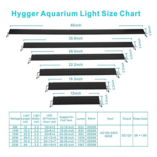 Specification: hygger 14W Full Spectrum Aquarium Light with Aluminum Alloy Shell Extendable Brackets, White Blue Red LEDs, External…