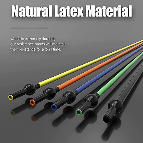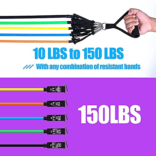 Specification: Resistance Bands Set with Large Handles, Natural Exercise Rubber Bands Stackable up to 150 lbs, Comes as a Set of 5, Fitness Workout Bands with Ankle Straps, Door Anchor Attachment, Carry Bag