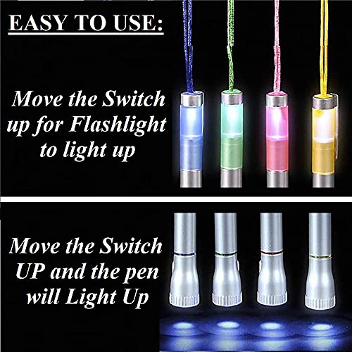 Specification: 5 inch LED Light-Up Black Ink Pen with Necklace (12 Pack) Flashlight and Pen with String for Camping.