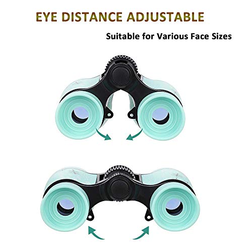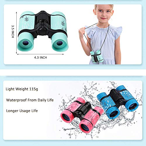 ☀ 【Child-Friendly】- Cute colors, this durable toy binocular along with a tiny compass, awaken the curiosity of every little adventurer. The rubber coating is not only a perfect fit in the hand and for the eyes of children, but also protects the binoculars from scratches and dampens falls.