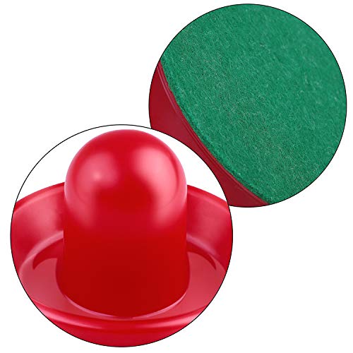 Package includes: each pack comes with 4 air hockey pushers in 2 colors, including red, black, 8 green pads and 8 red hockey pucks, and we provide 1 drawstring bag for hockey pushers and pucks storage